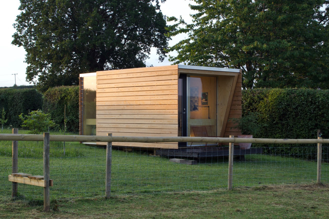 All models are built to the same high-quality materials specification. The structural panels are made from CNC-cut spruce plywood which also provides a warm, natural and durable internal finish. The external cladding is an open rainscreen made from locally grown Western Red Cedar. The door and opening side windows are made by the German manufacturer Rehau. The front windows are double glazed in toughened glass. All our studios 'float' above the ground level and sit on low-impact foundations which are included in the price.